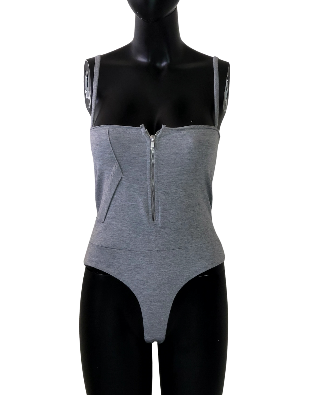 anh x NTH: Zip Front Bodysuit - Heather Gray